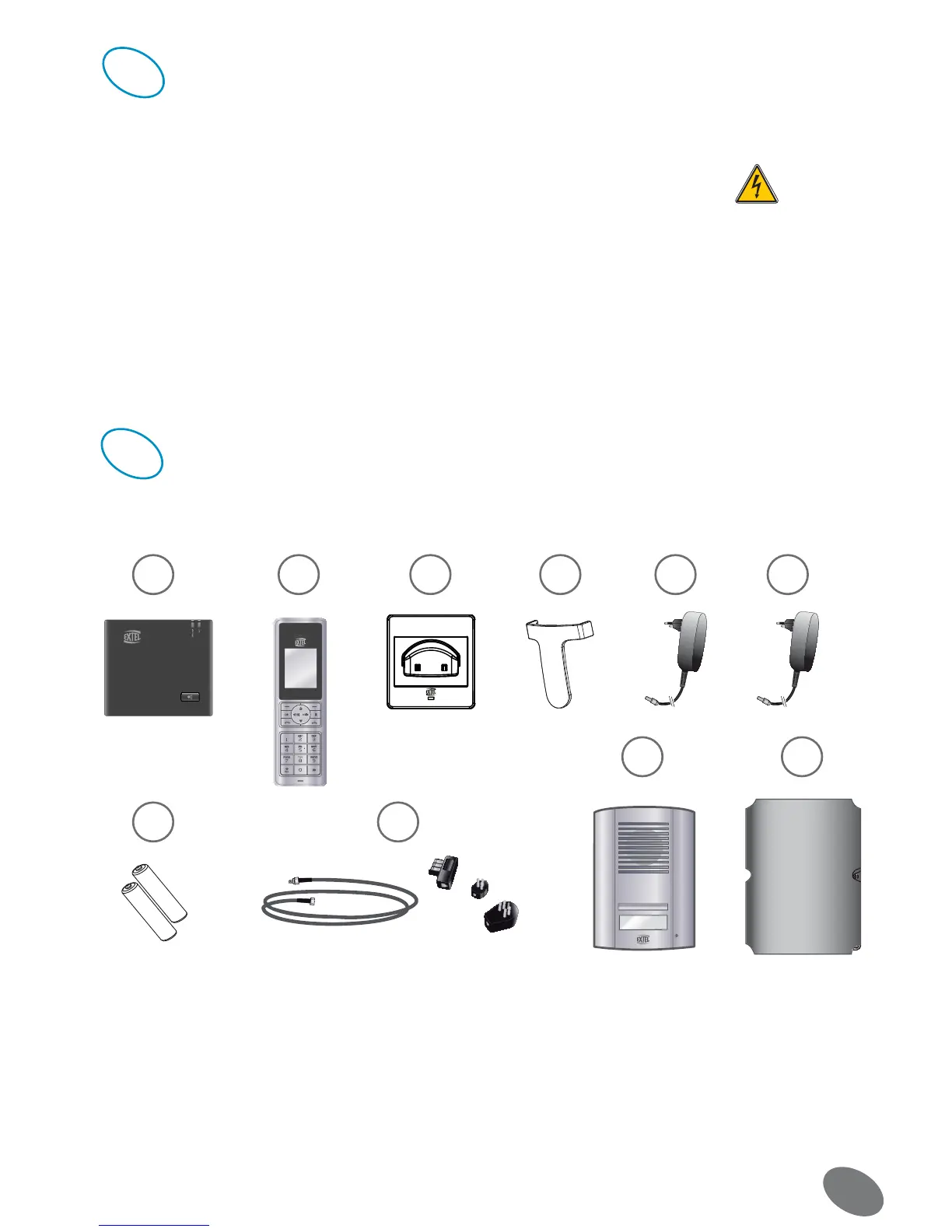 for charging station 6 • Network adapter for base station 7 • Rechargeable batteries for mobile handset 8 •