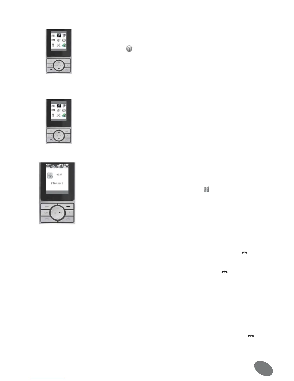 - Pressez la touche Intercom suivie du numéro du combiné mobile. Dès que l’autre combiné mobile a décroché,