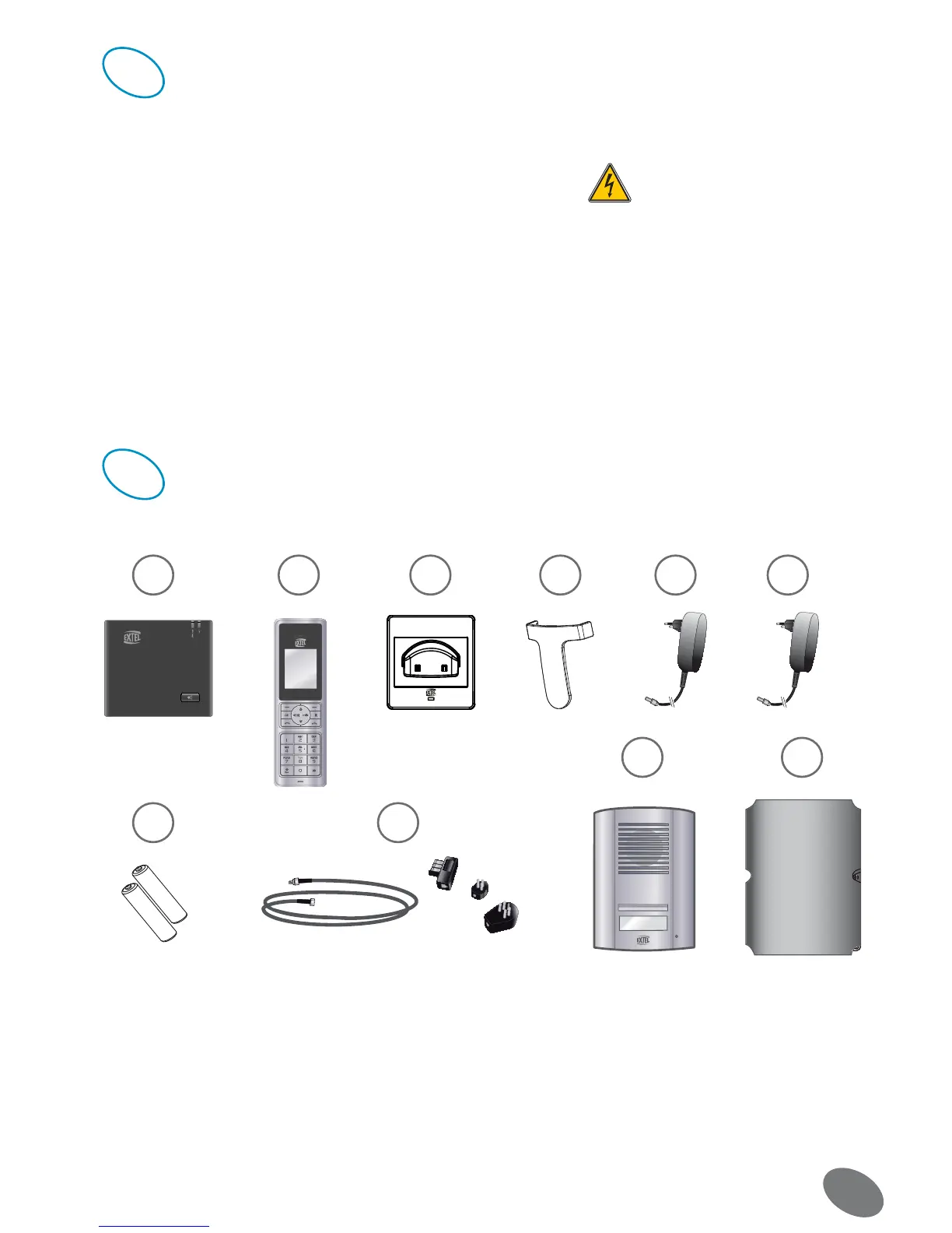 7 • • Baterias recarregáveis para auscultador móvel 8 • Cabo telefónico 9 • Placa de rua