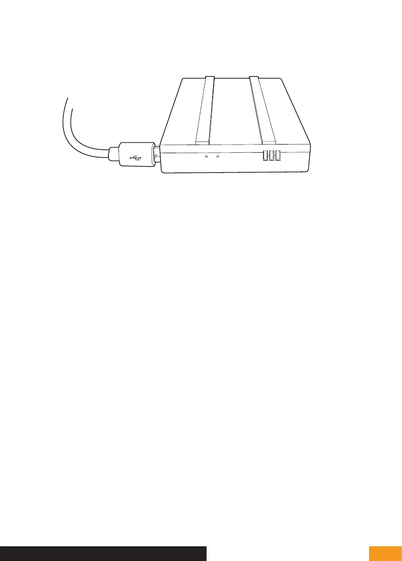 The battery is charged using the cable provided and a mobile phone charger or the USB port of a computer.