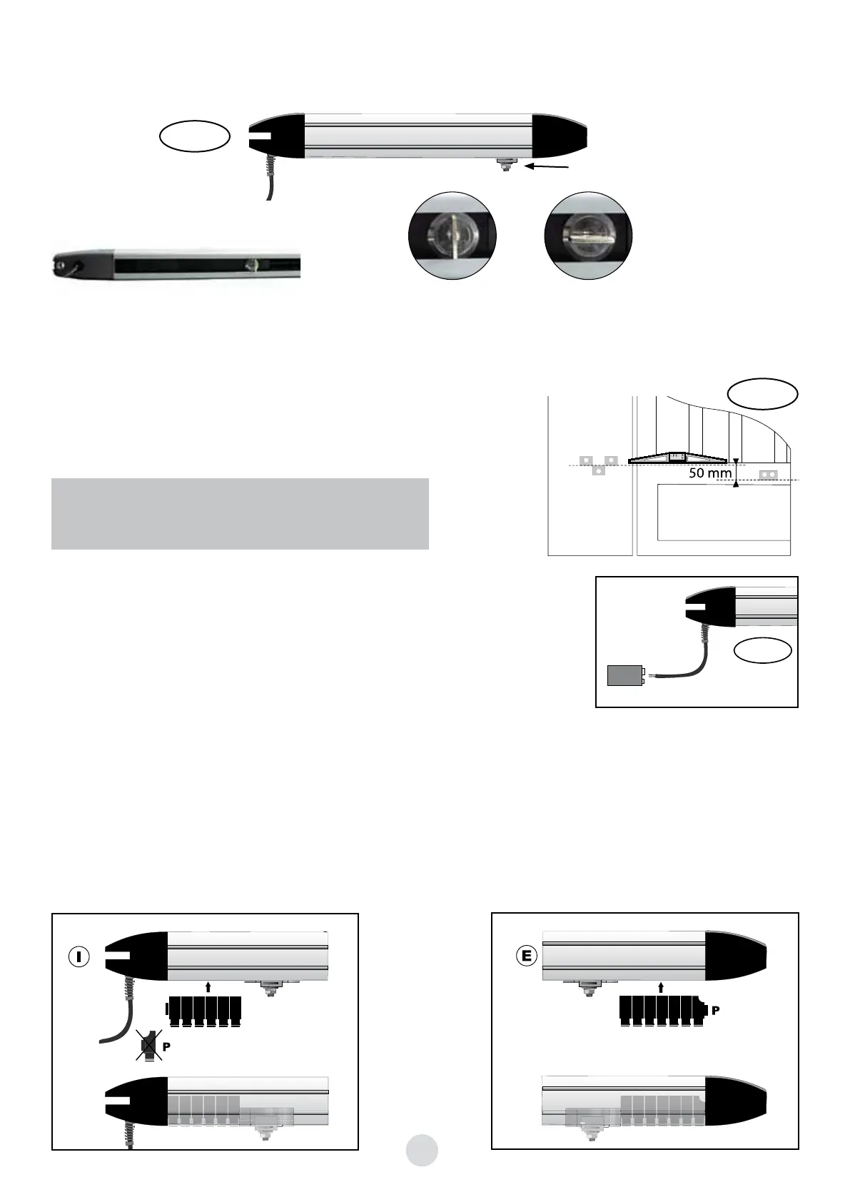 «E» Para uma abertura para o exterior, os dominós devem ser instalados nos cilindros do lado do portão termi-
