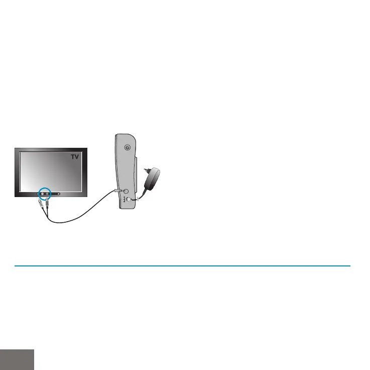 de Monitor, in de uitgang ‘A/V out’ en de gele (Video)