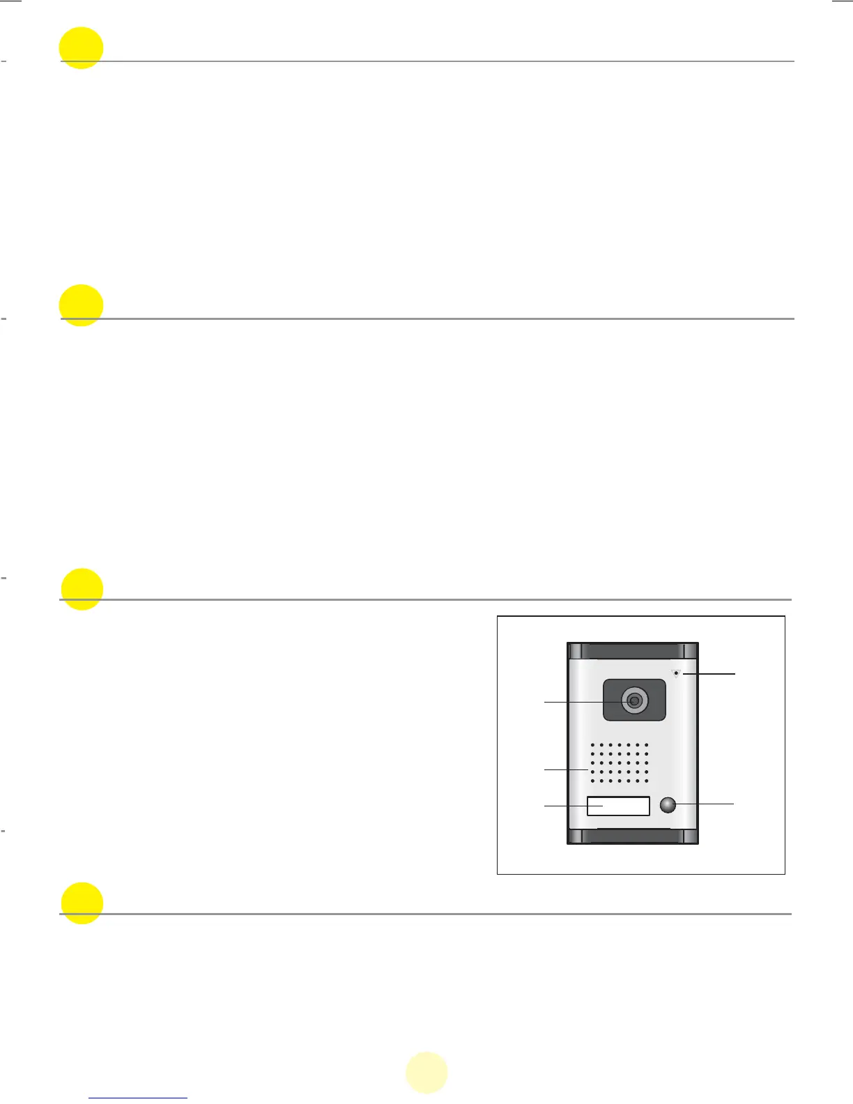 3 - 4. Naamplaat en belknop: als op de knop gedrukt wordt, zal de bel klinken in de binnen- en de
