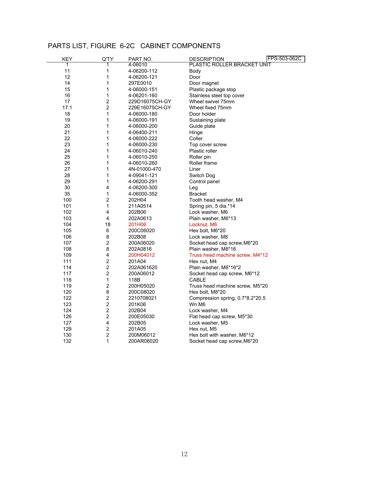 117 2 200A06012 Socket head cap screw, M6*12