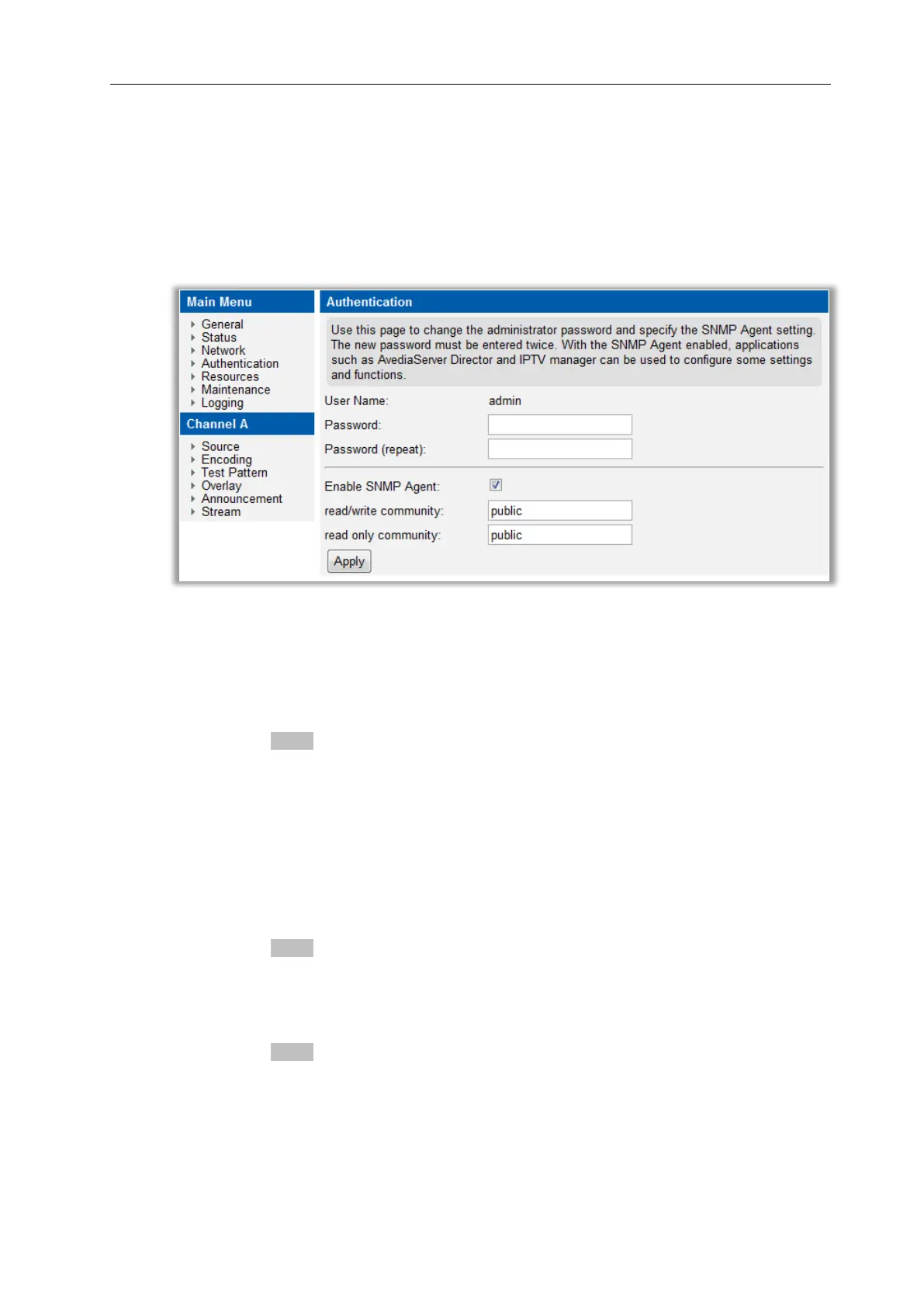 With the SNMP agent enabled you can manage a subset of the encoder functions and