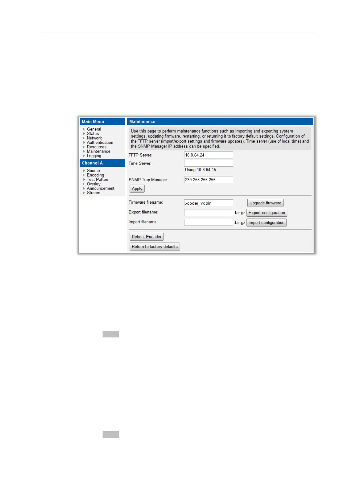 operate correctly, the encoder must be configured to communicate with the TFTP server.