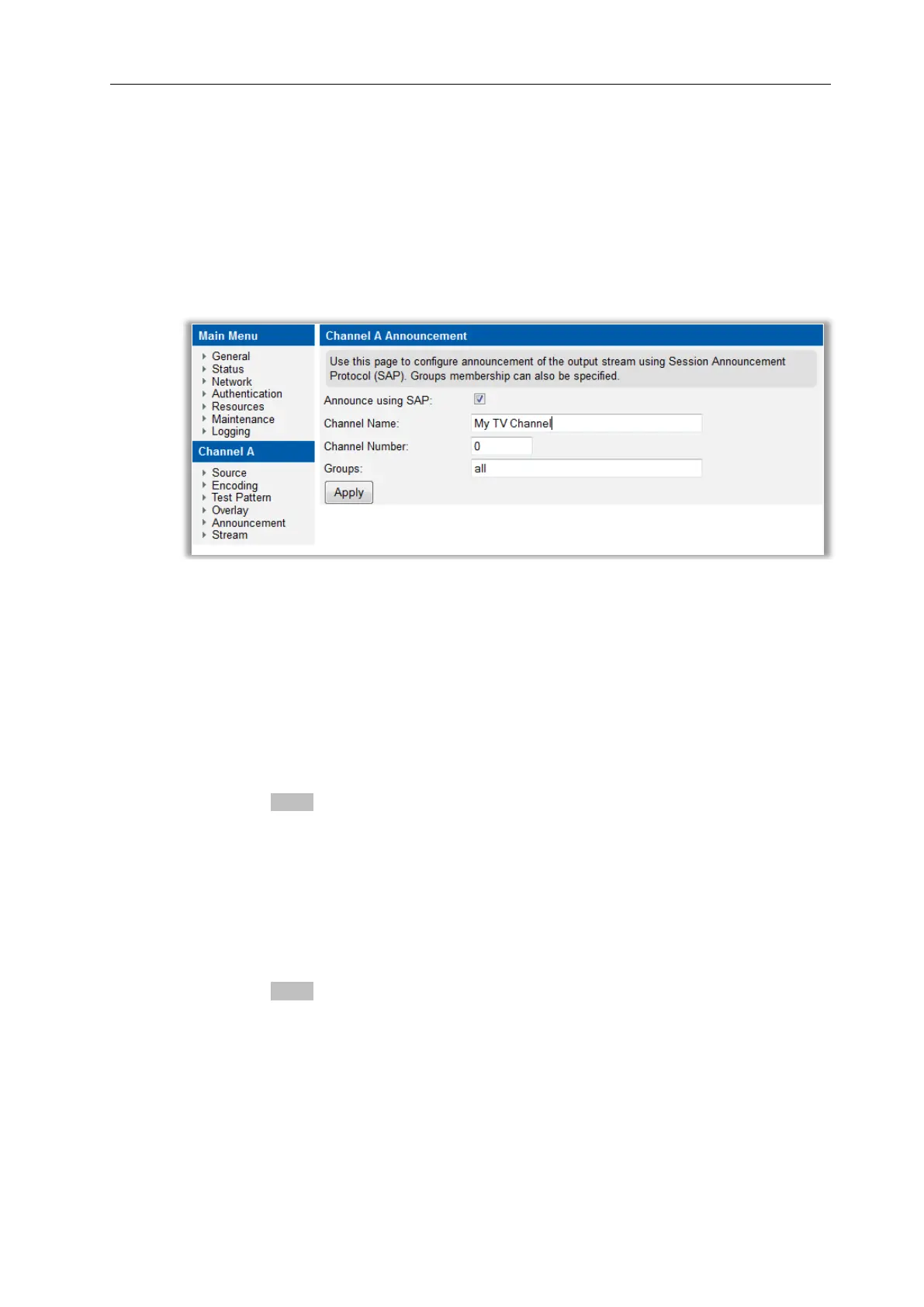 The channel name will be used by Exterity IPTV receivers and PC clients to identify the