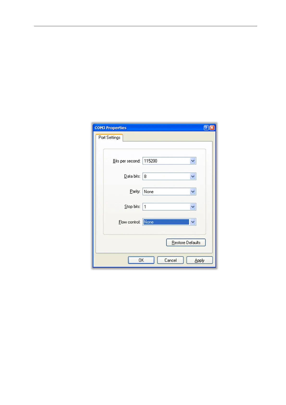 PC). Set up the serial port with the following settings (see example in Figure 30):