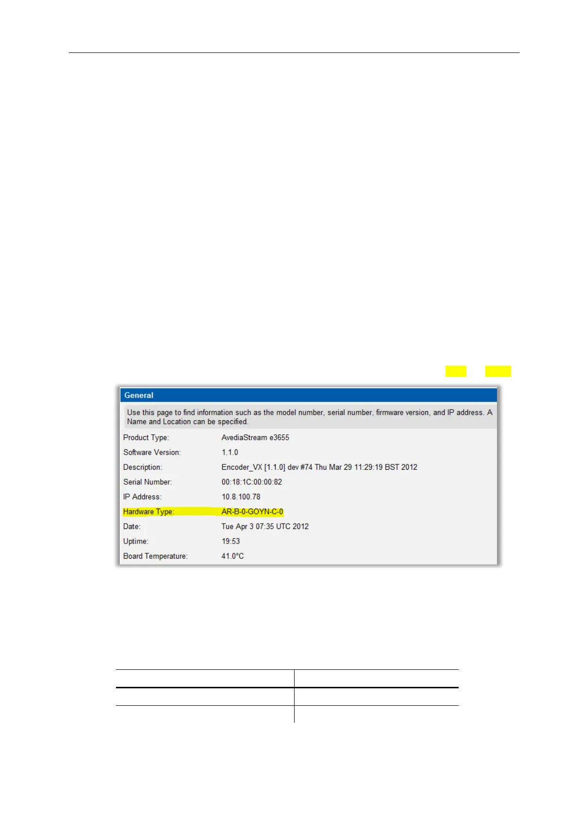 Hardware Type line on the General Page of the AvediaStream web interface as shown in