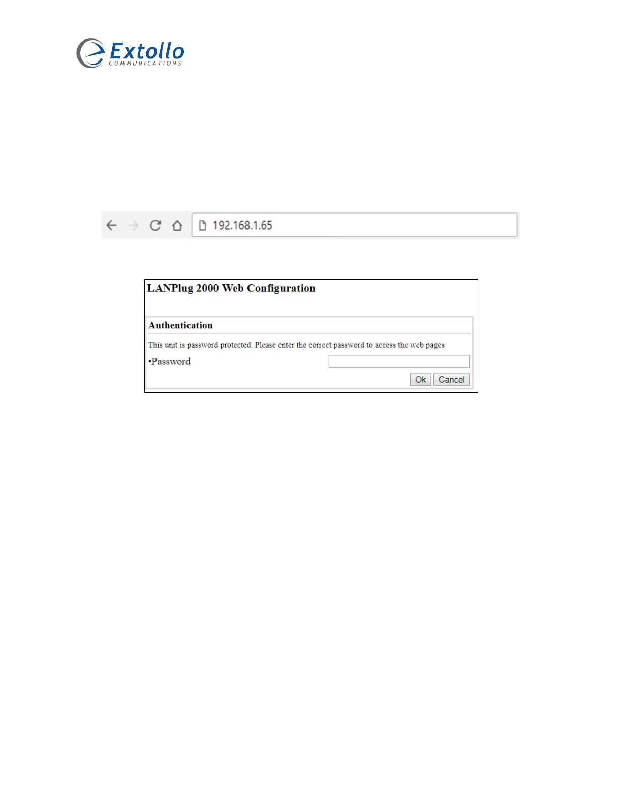 2. In the web browser bar, type the IP address that was assigned to the LANPlug 2000.