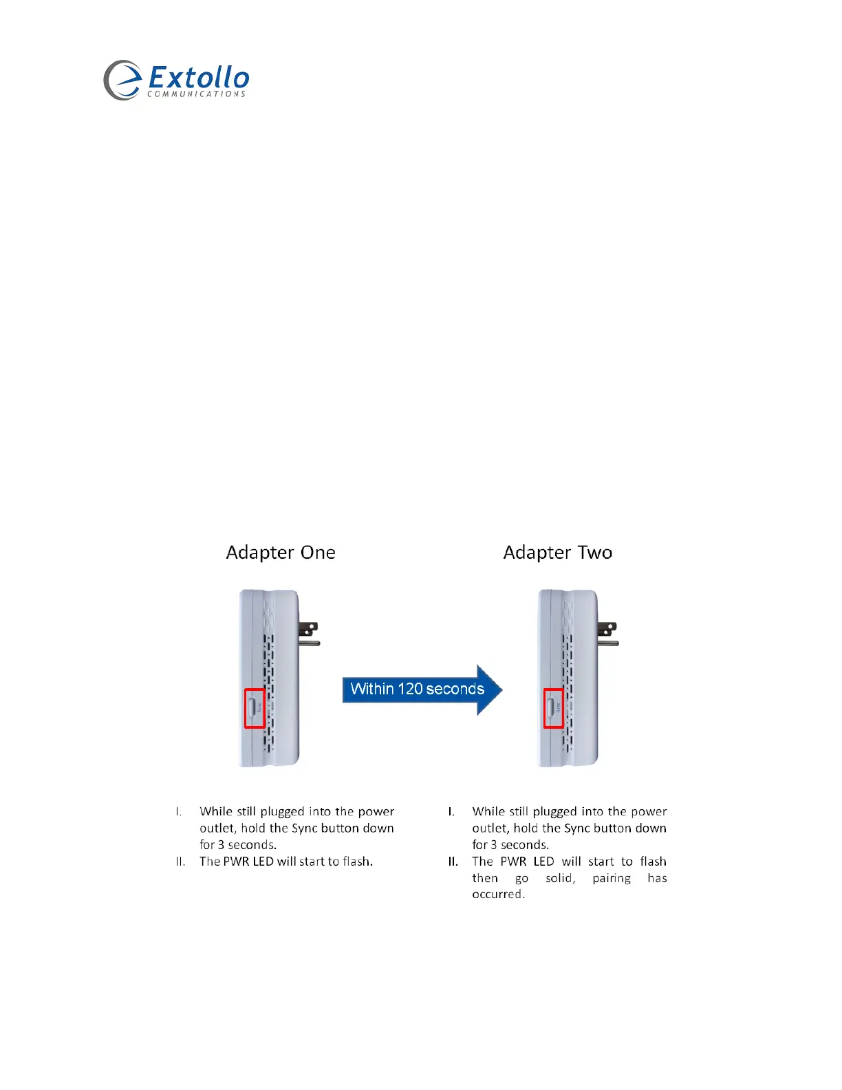 5. On adapter two, press and hold the Sync button for 3 seconds then release. The PWR