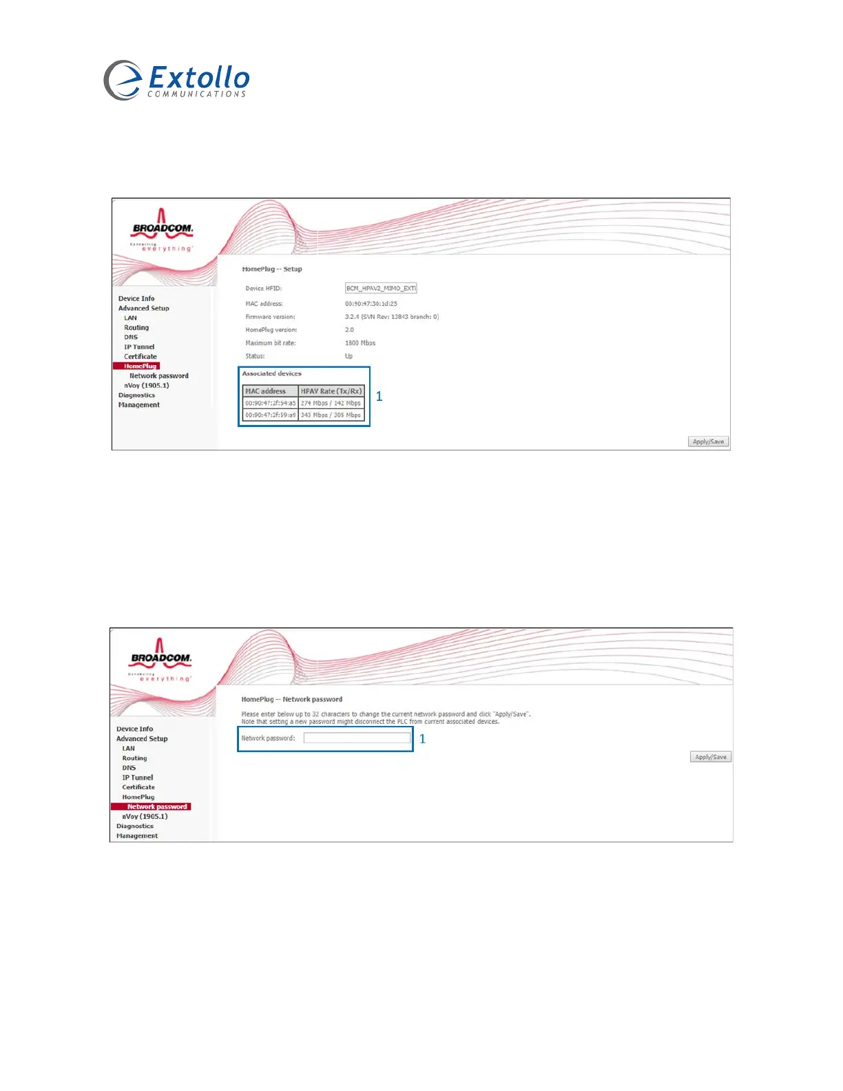 1. The “Associated devices” field provides Transmit and Receive Powerline link rates