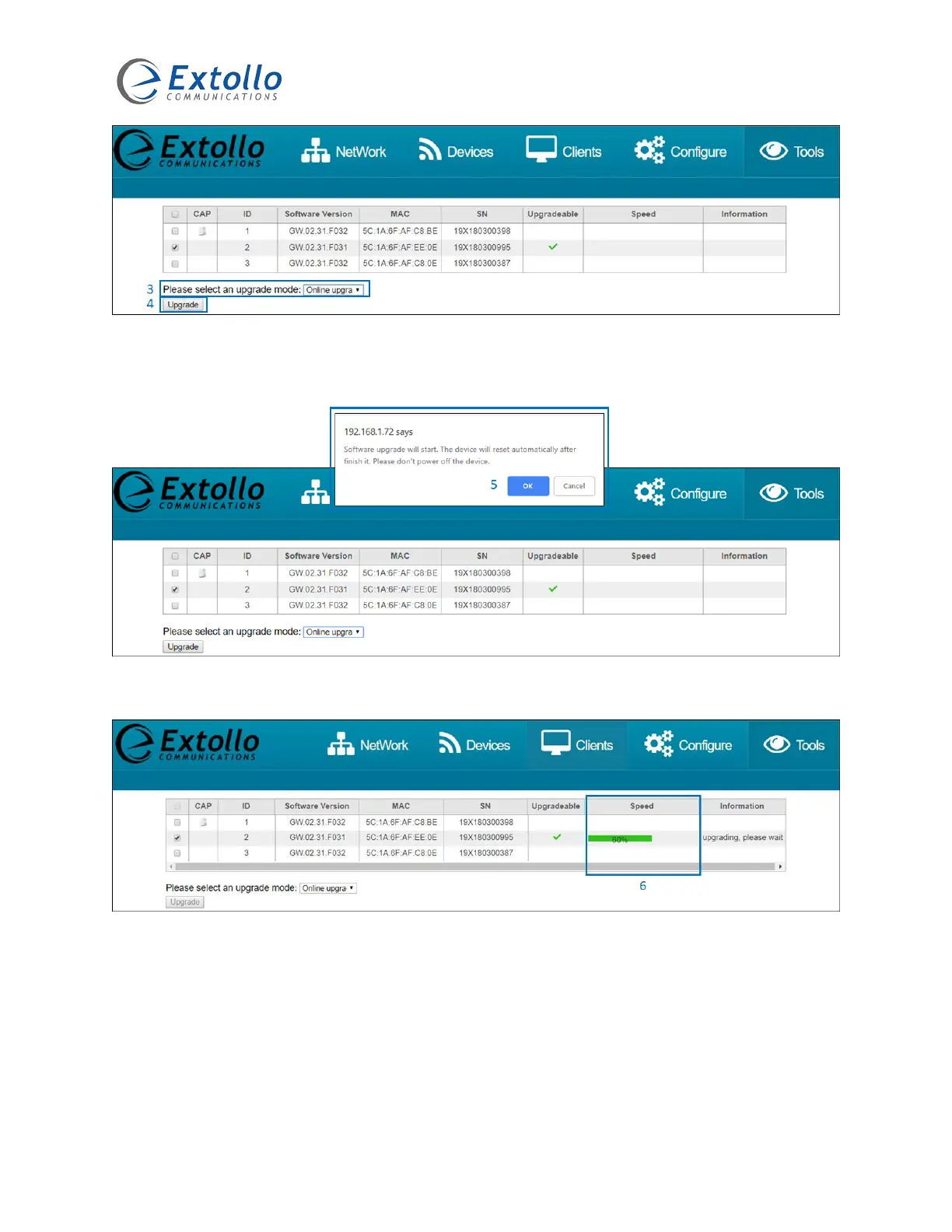 5. A pop-up window will be presented. Select “OK” to continue the upgrade procedure.