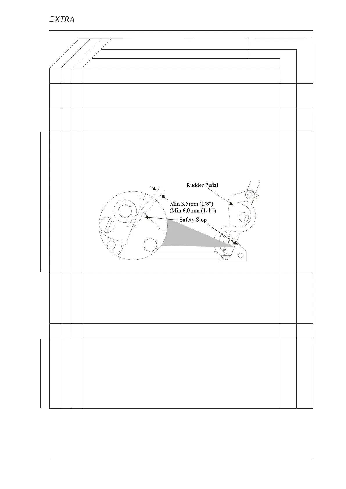 O 10 Check for minimum 3.5 mm (1/8") clearance of rudder pedal