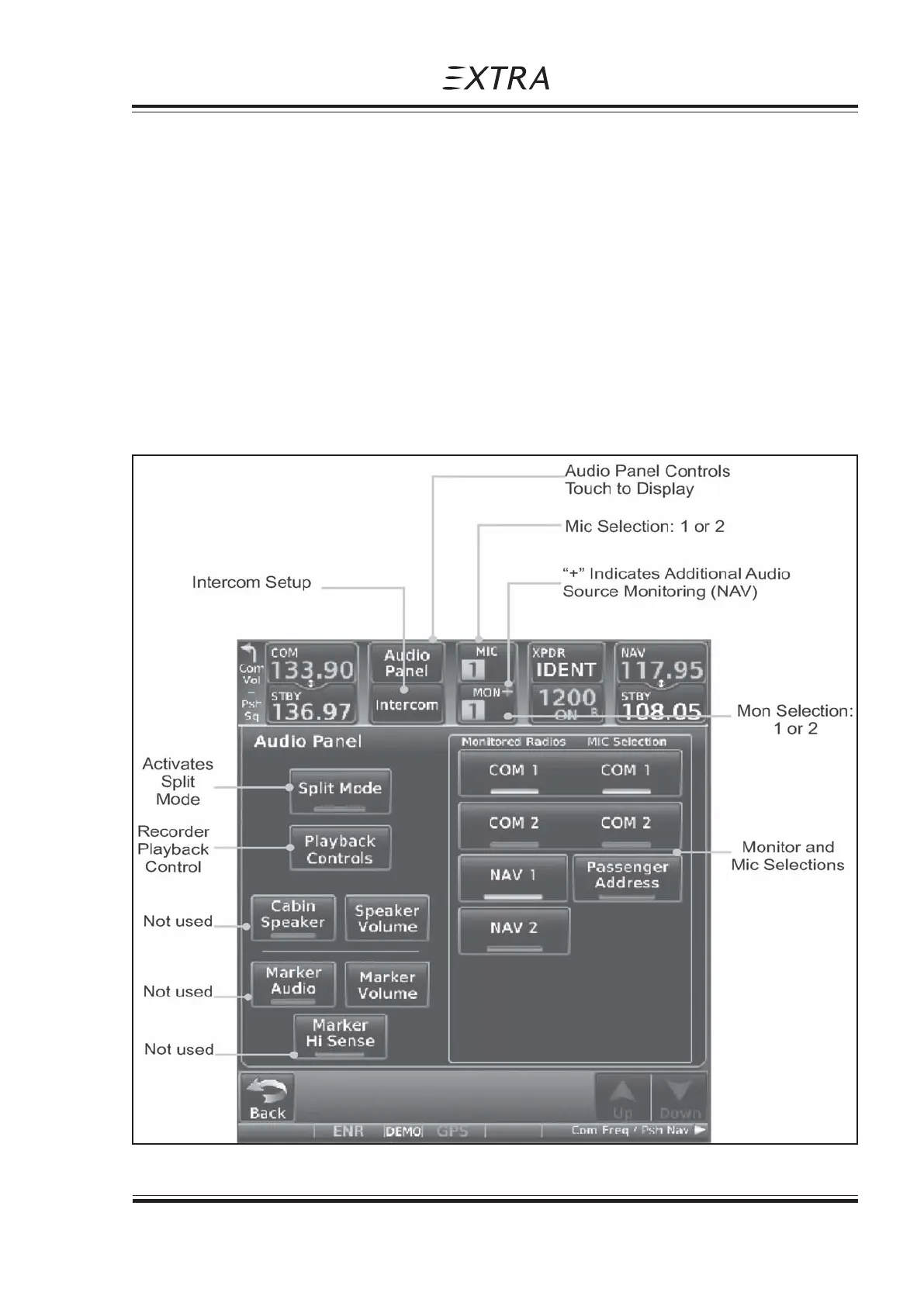 1. While the Audio Control page is displayed, touch the Split Mode key to display Crew Intercom