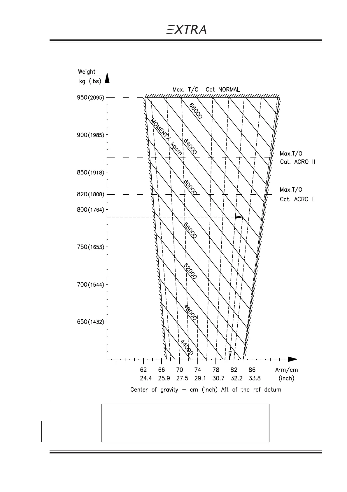 At 790 KG (1741 LBS) and 64000 kgcm the C/G location is