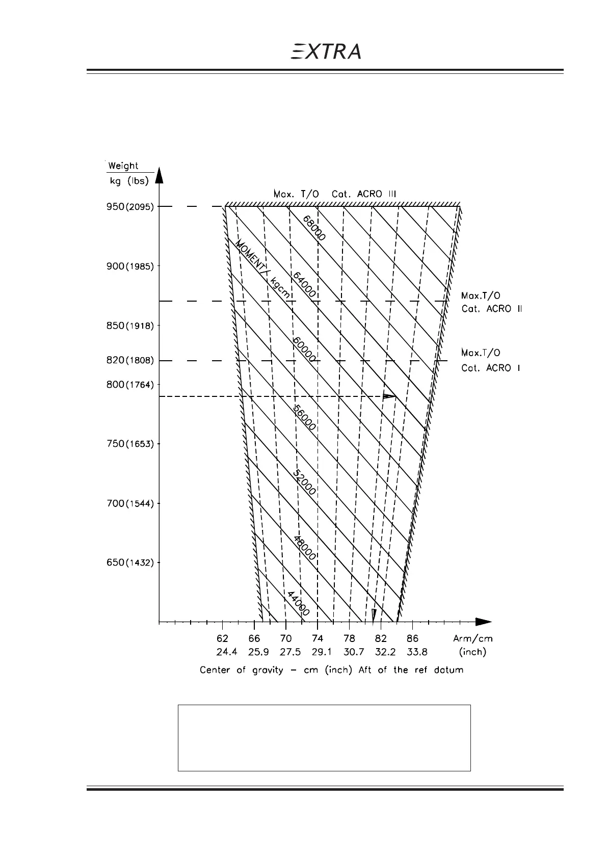 At 790 KG (1741 LBS) and 640000 kgcm the C/G location is