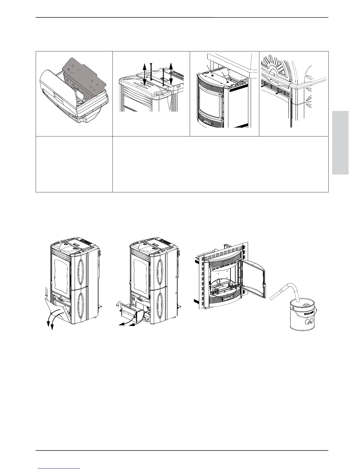 WEEKLY Cleaning the ash drawer: empty the ash drawer every week or when required. For the inserts, suck with relevant ash suction
