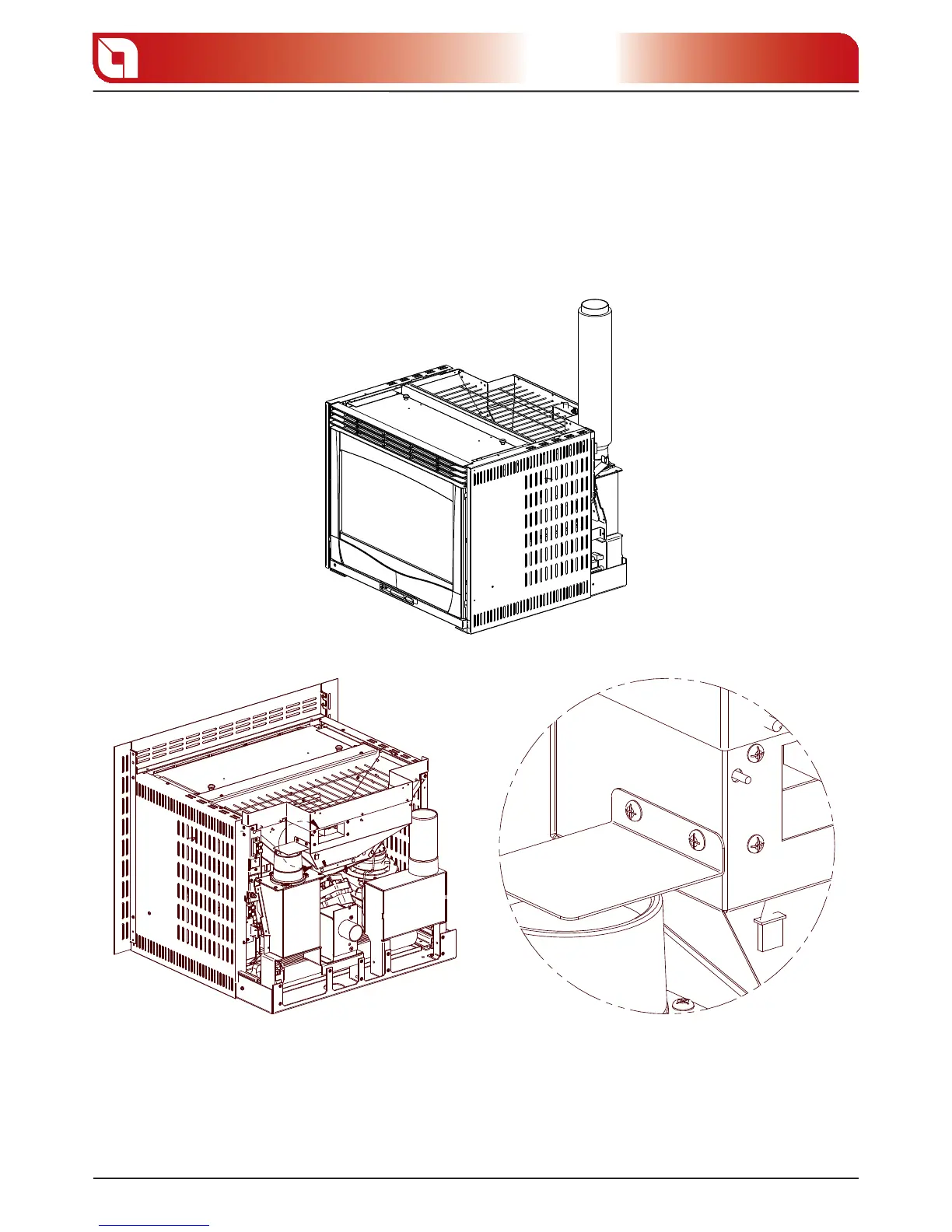 The insert is supplied with a ducting pipe, closed by a metal clamp: before connecting the piping, remove