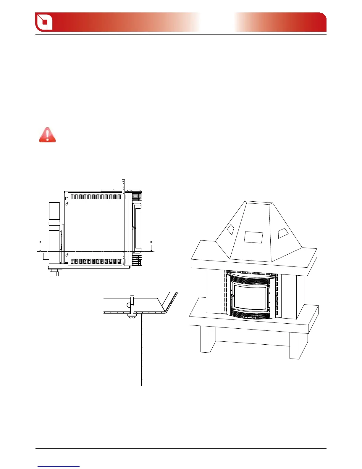 Upper part (hot air exit) D total minimum surface 500 cm.