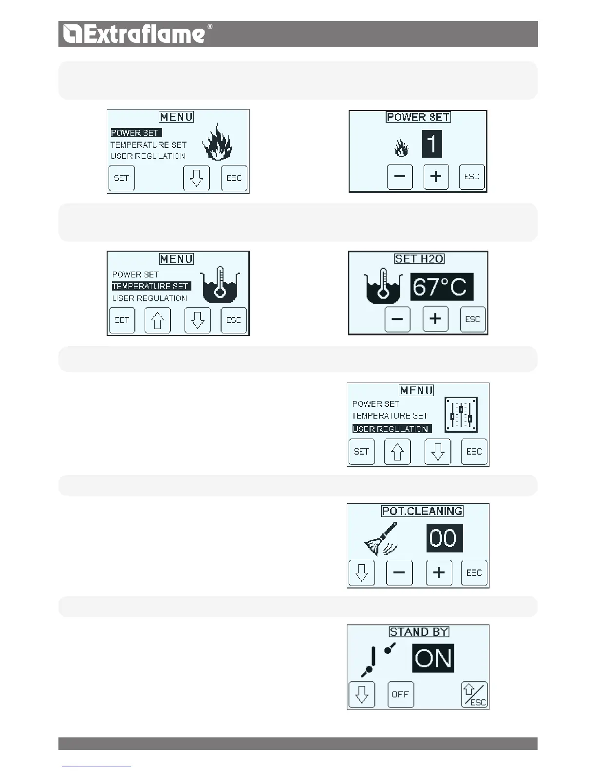 The following menu allows the boiler temperature to be set. Possible setting are: 65 - 80°C.