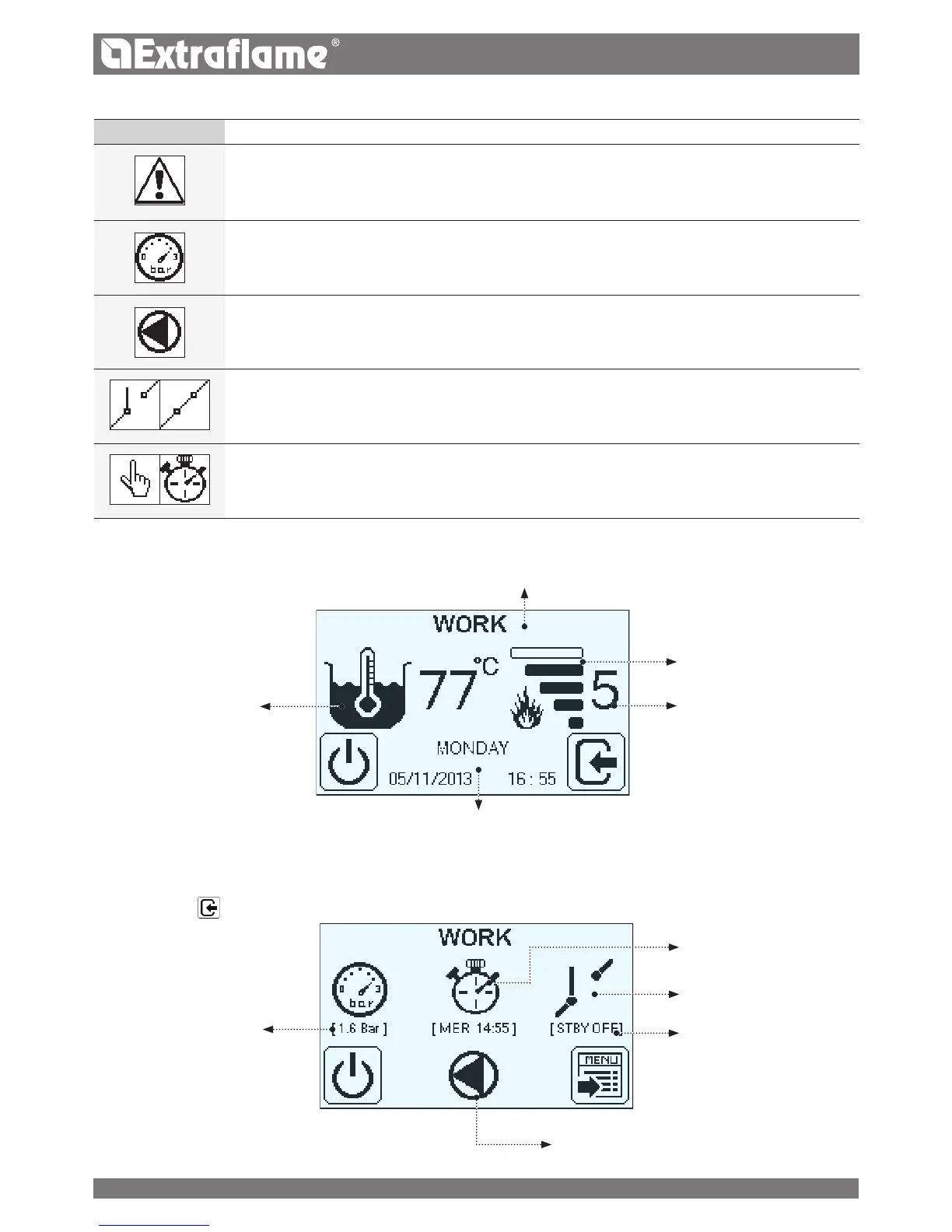 Flashing ling = the safety device is active (H2O temperature > 85°C)