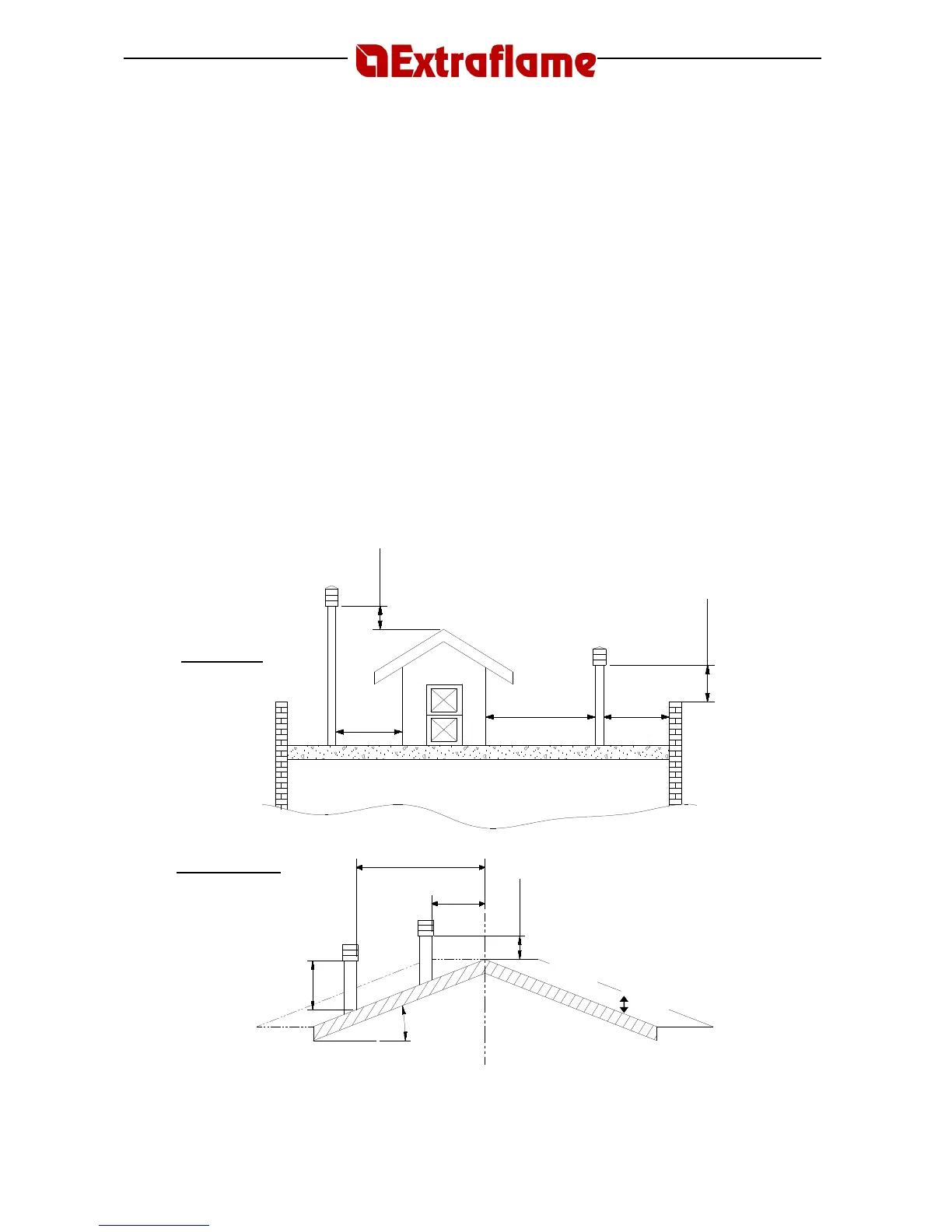 Direct discharge of combustion products must take place on the roof and the exhaust pipe must