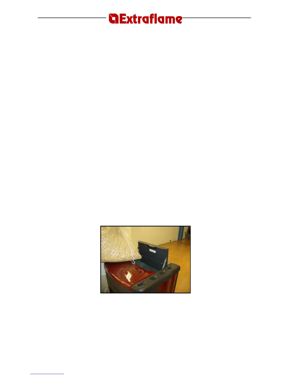 To load the pellets, open the tank cover positioned on the upper part of the stove and empty the