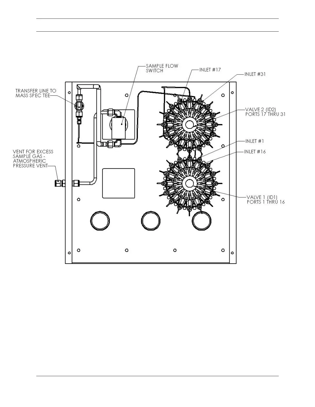 The common outlet of valve 1 is plumbed to the inlet port #1 of valve 2. The common