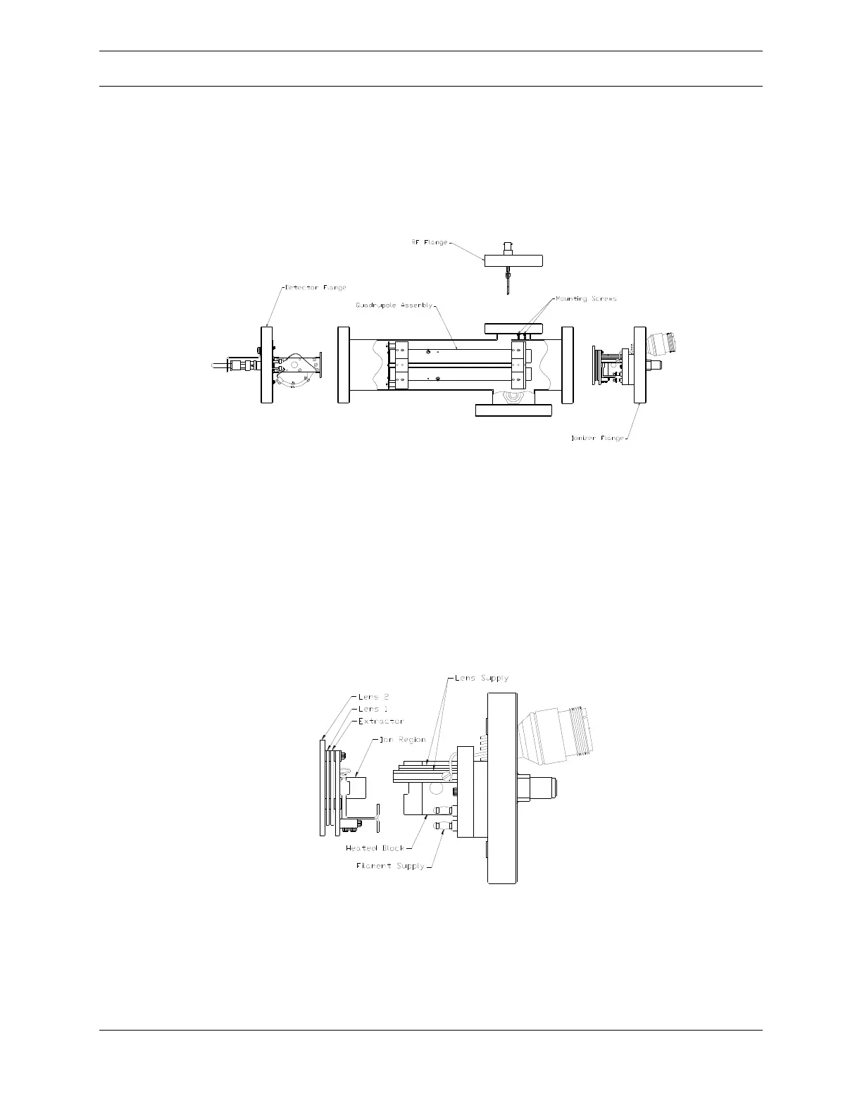 assembly consists of the ionizer, quadrupole mass filter, and detector, as shown