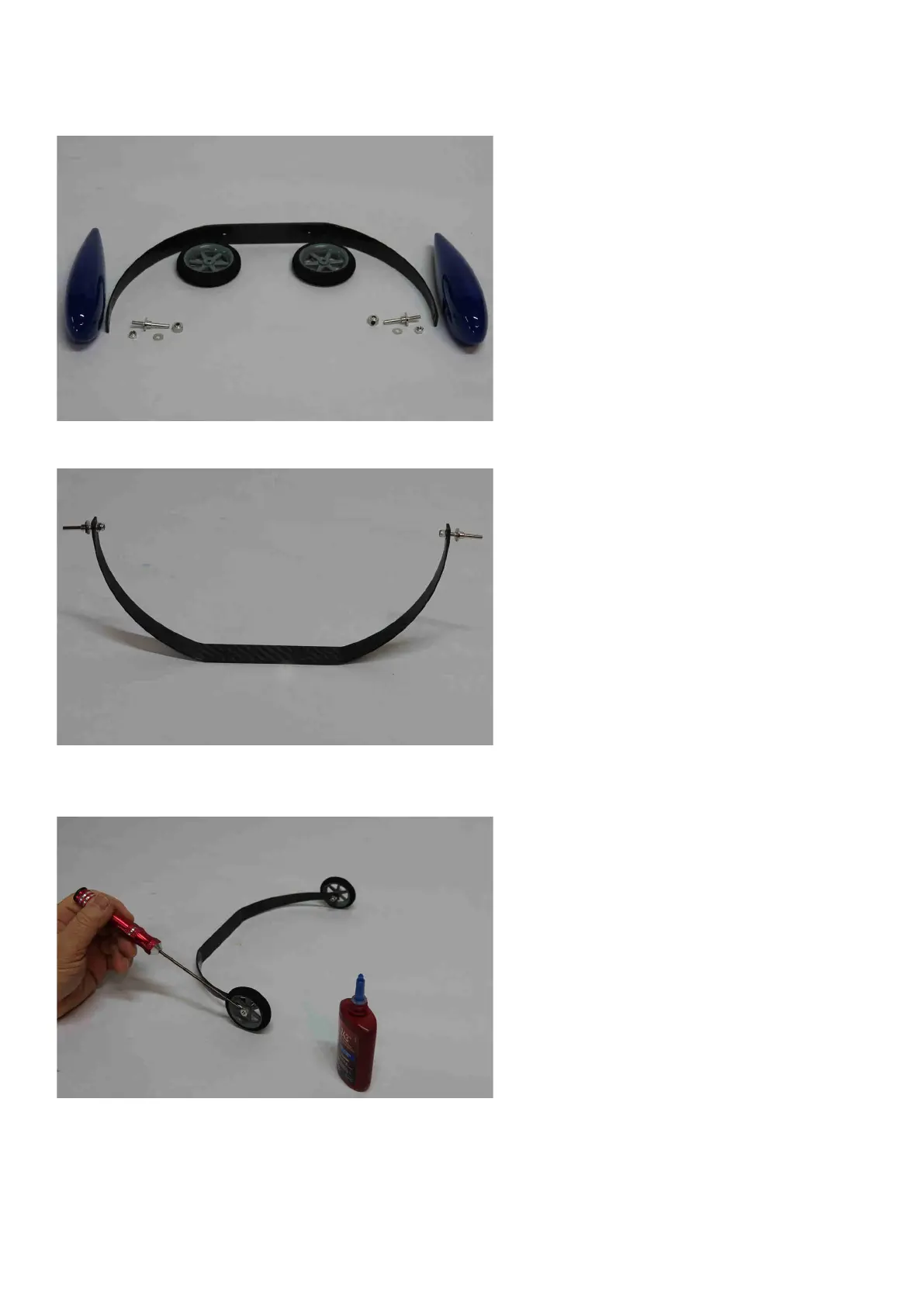 2. Insert the threaded portion of the axle into the carbon fiber landing gear. Slide a
