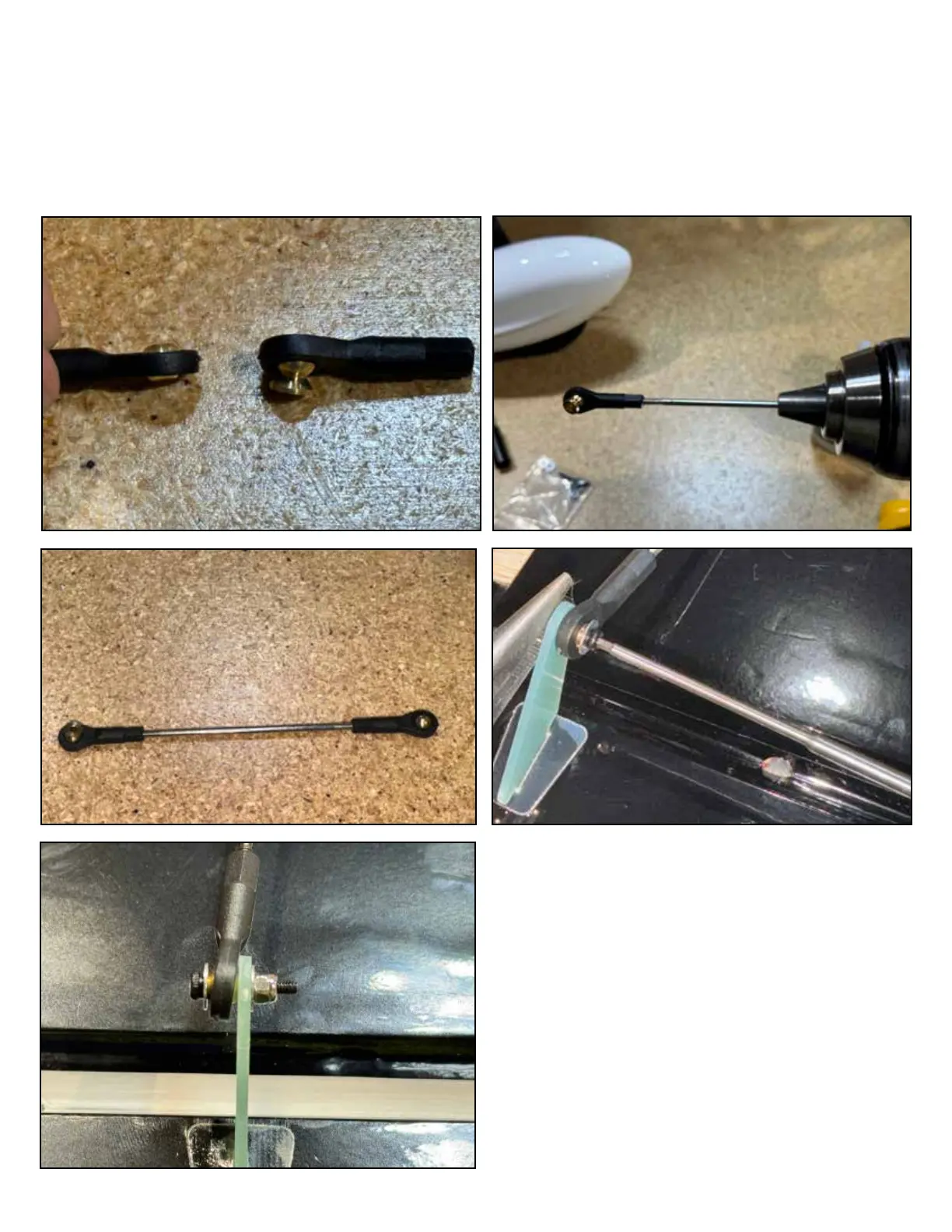 Assemble and install the pushrods onto each control horn. e pushrods are assembled from a thread-