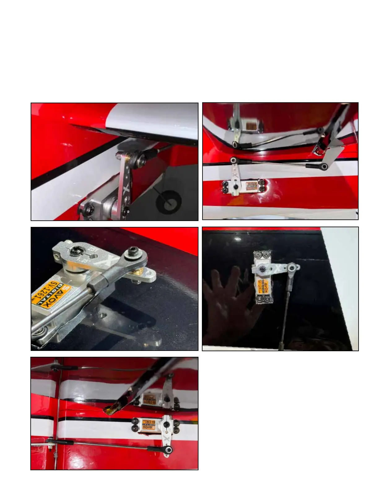 NOTE: e exact position of the pushrods on the servo arms will vary with dierent setups. Shown