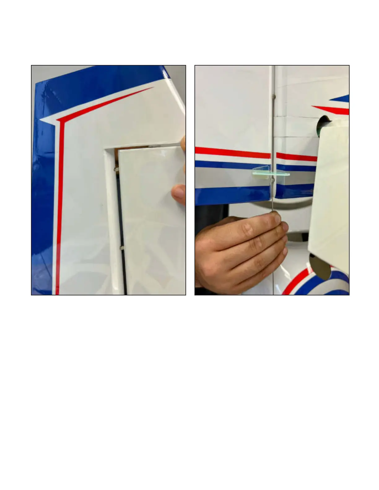 e rudder is retained with a wire. Place the rudder in position and install the wire from the bottom as