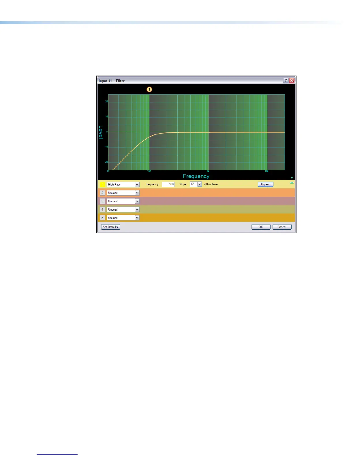 All frequencies lower than the specified frequency (in this example,100 Hz) are attenuated