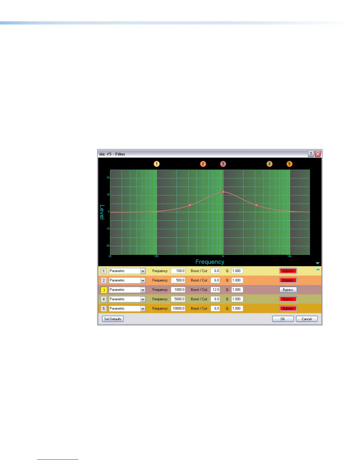 containing five parametric filters centered at different frequencies but with the same Q