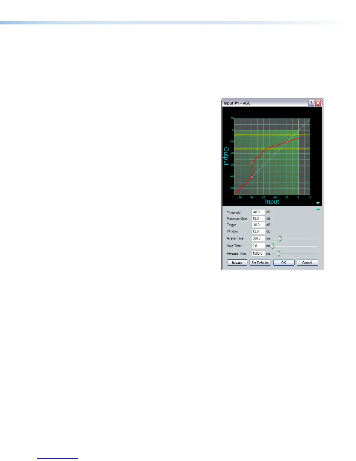 Hold Time — Adjusts how long AGC continues after the input signal drops below the
