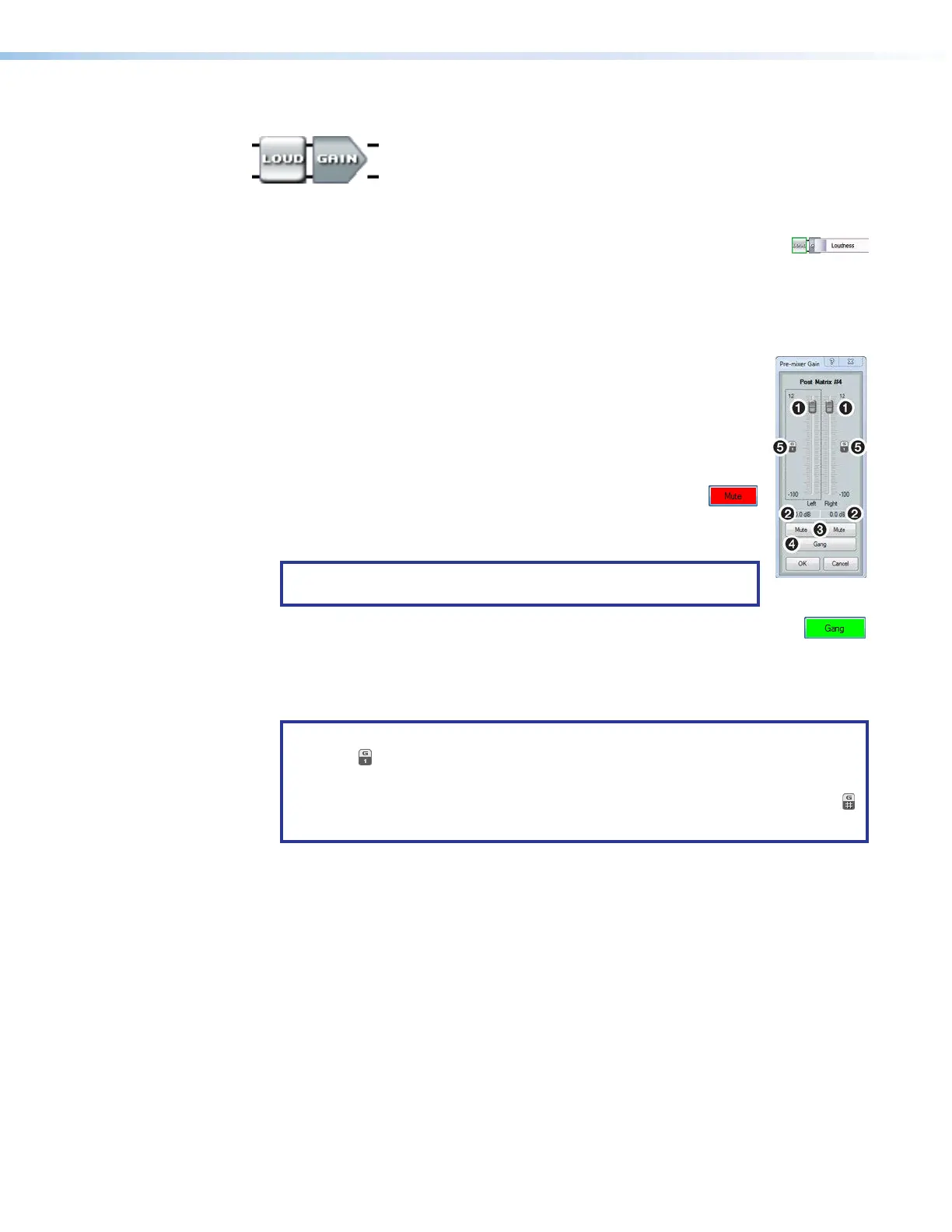 NOTE: When the left and right channels are ganged, either Mute