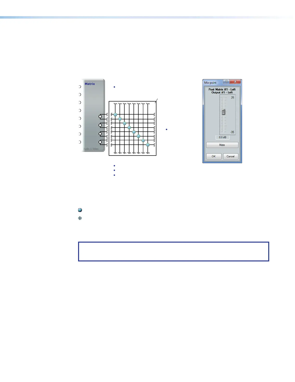 Figure 46. Switcher-to-output Mixer Block and Mix-point Dialog Box