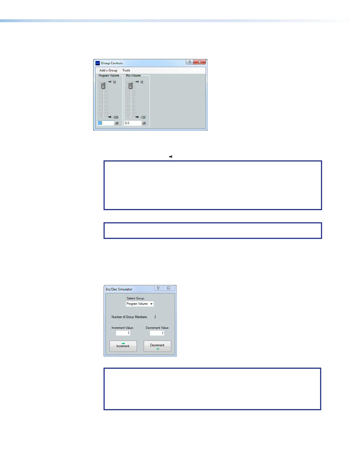 • Click Tools > Increment/Decrement Simulator in the Group Controls dialog box to