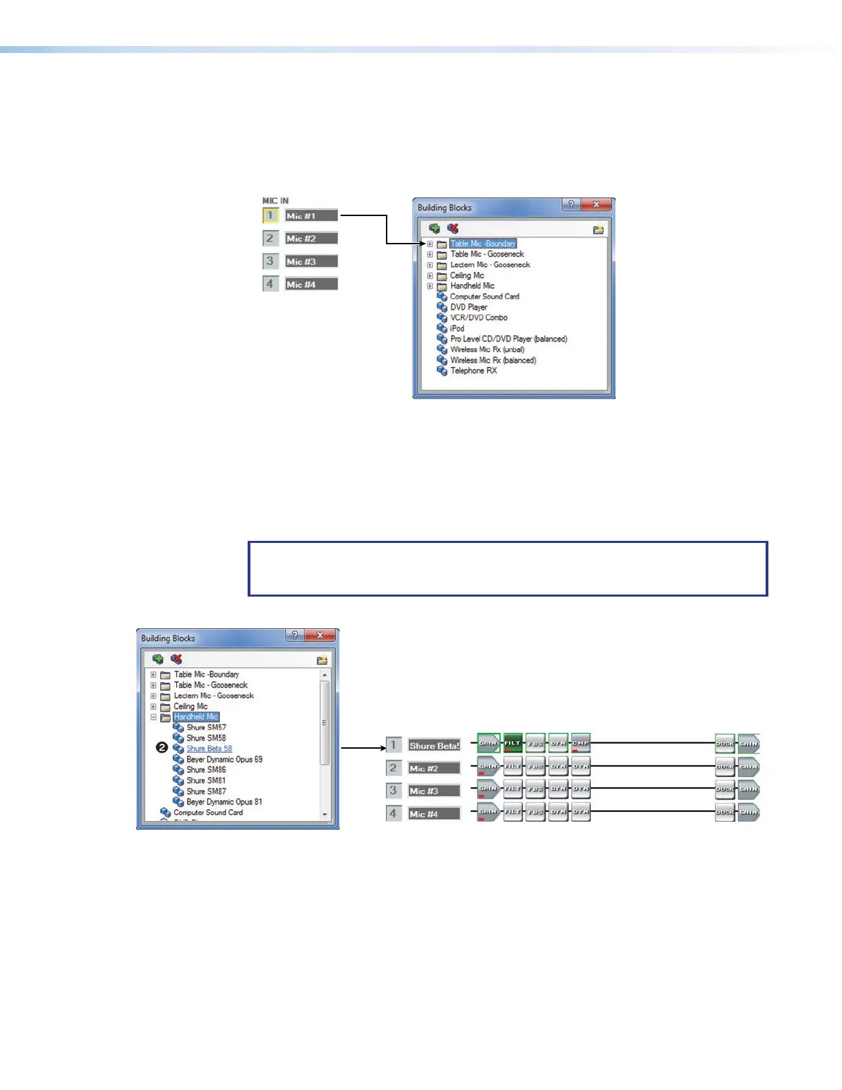 1. Open the Building Blocks dialog box: Click the Mic Input1 number box (see