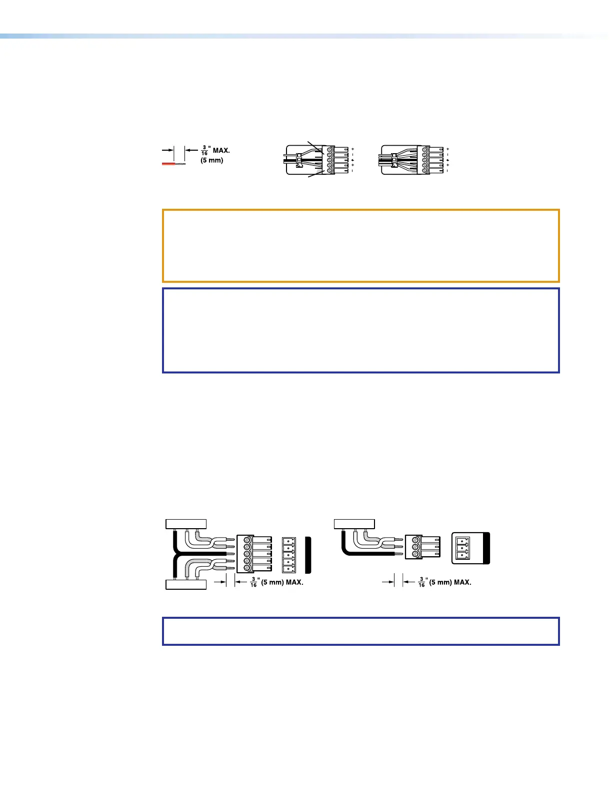 • The length of exposed wires is important. The ideal length is 3/16 inch (5 millimeter)