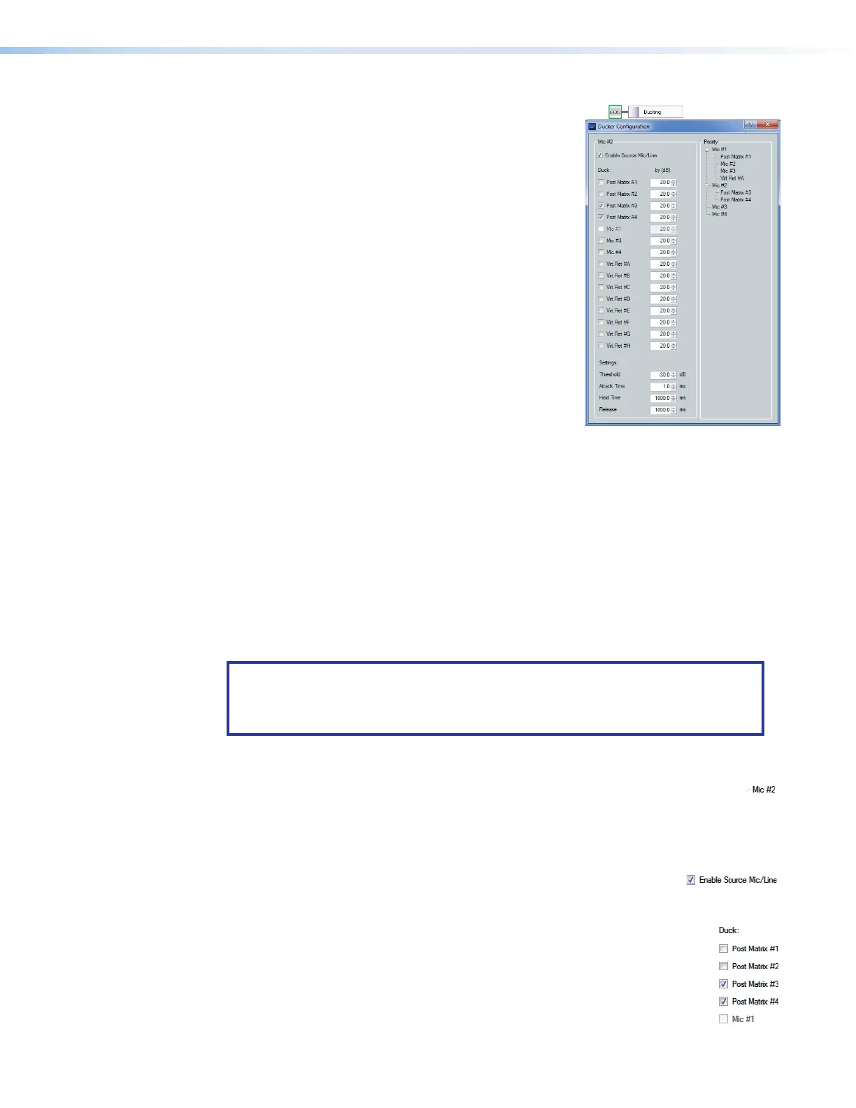 Enable Source Mic/Line check box — When checked, ducking is