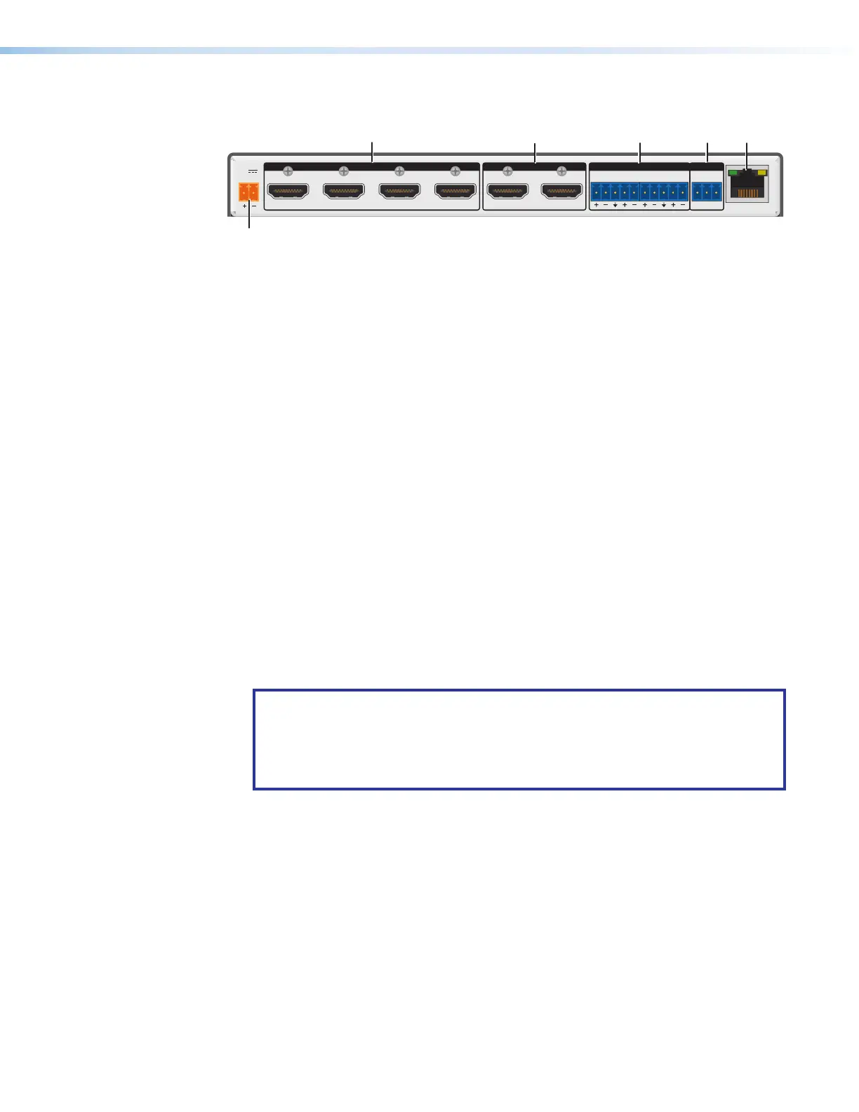 Remote RS-232 port — Connect a host device, such as a computer or touchpanel