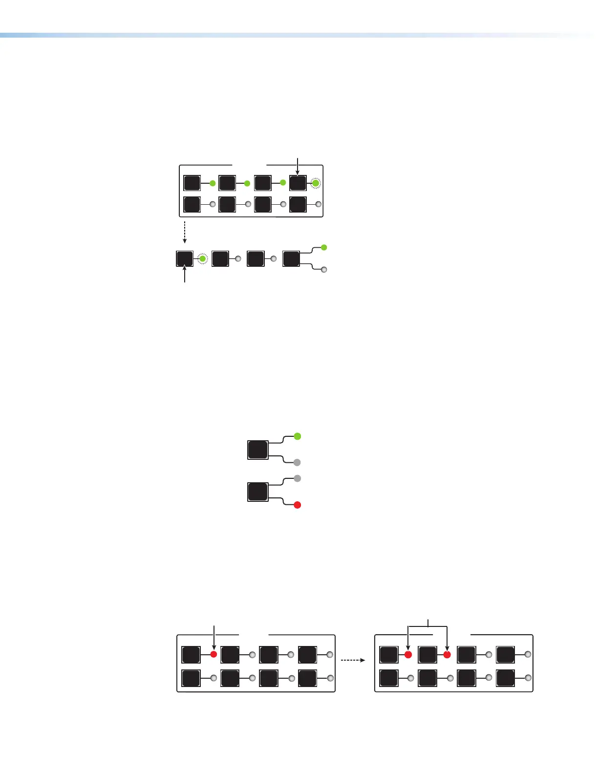 The LEDs for any outputs already tied to the selected input