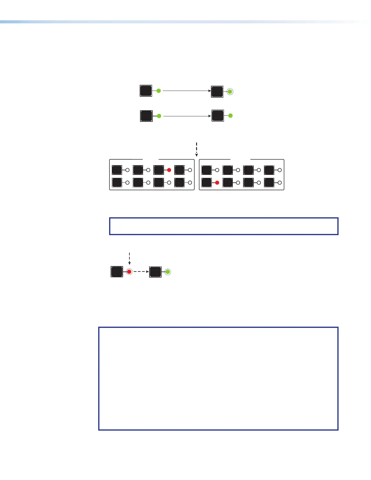 • When the DXP enters view-only mode, the output LEDs light for all outputs