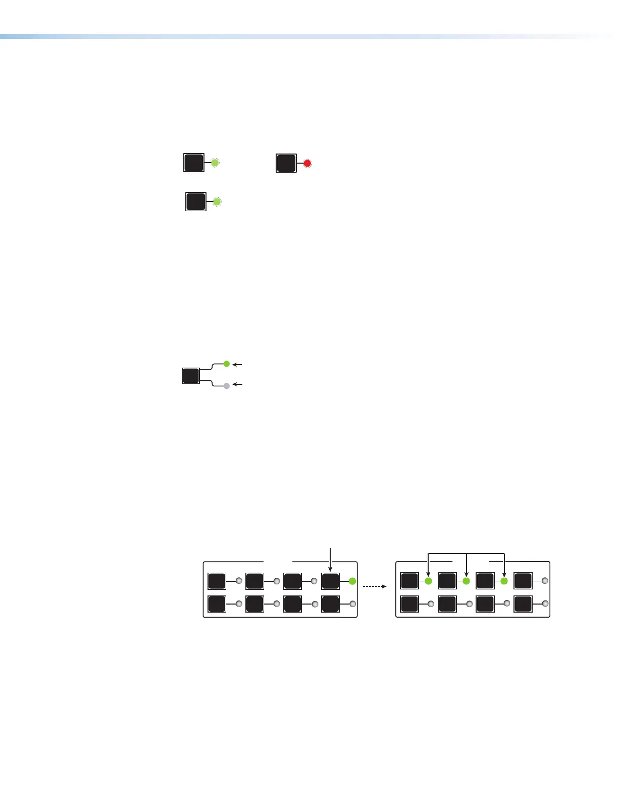 4. Press the output buttons to which the input is being tied. Each selected output LED