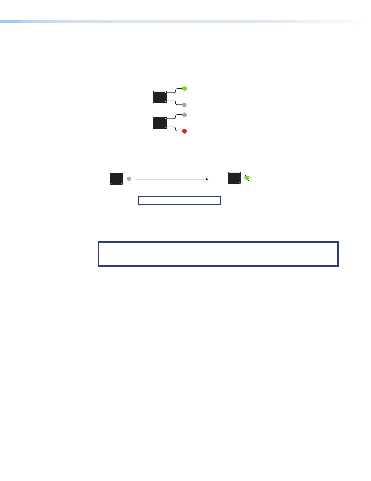 • If the selected output is muted, the button LED blinks red (audio) or green (video),