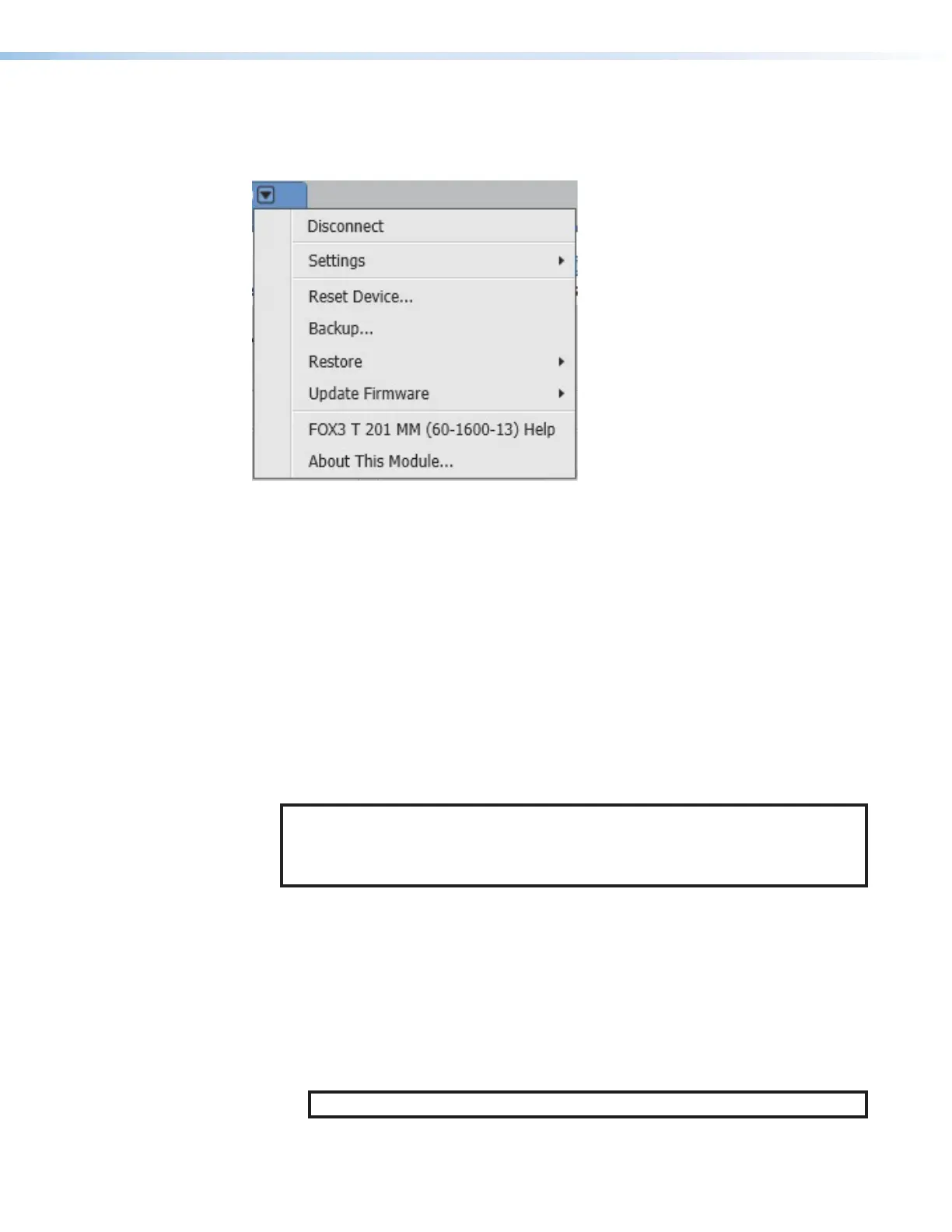 • Restore this Device — Upload a saved configuration for a FOX3T201 to the