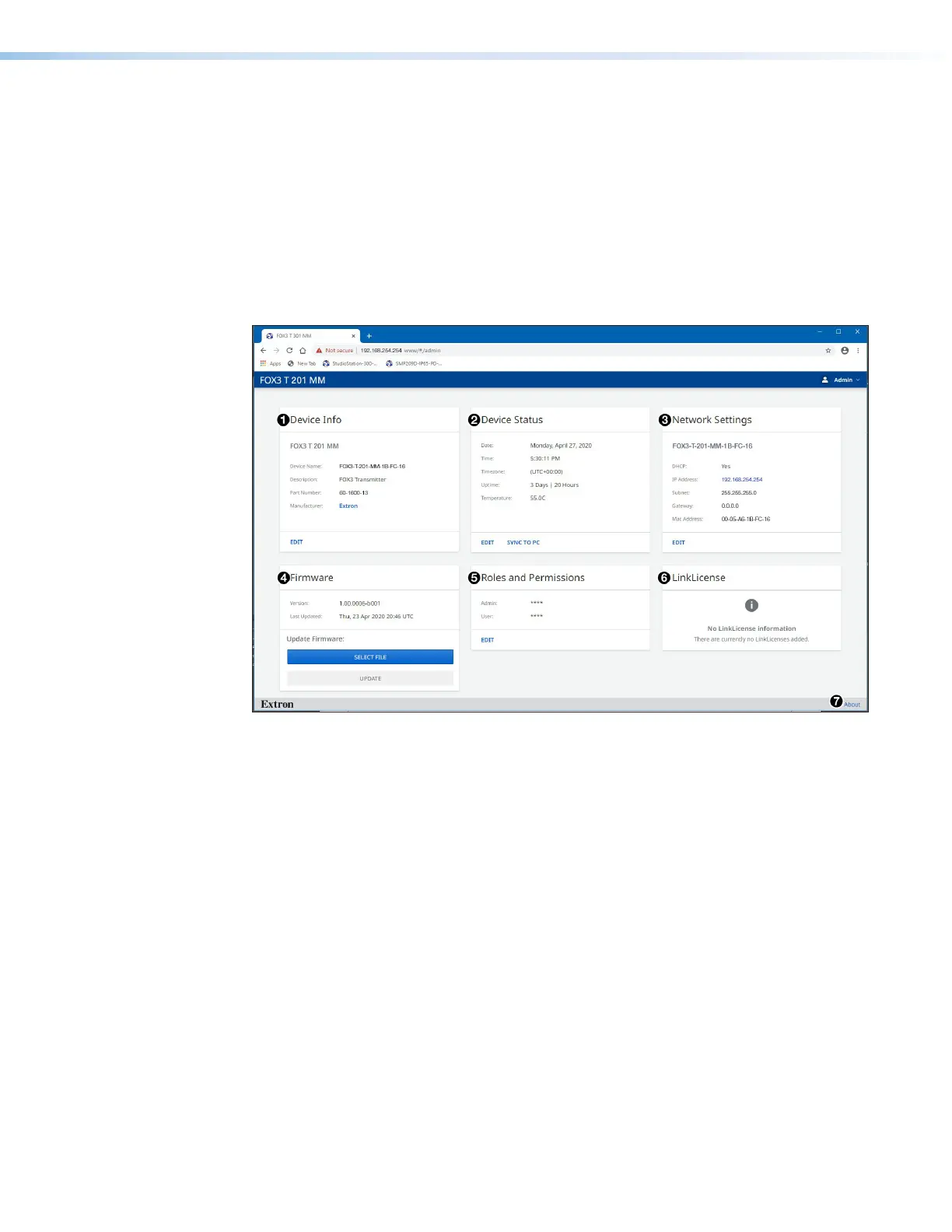 The FOX3T201 internal web page (see figure29) provides an overall, read-only view of the